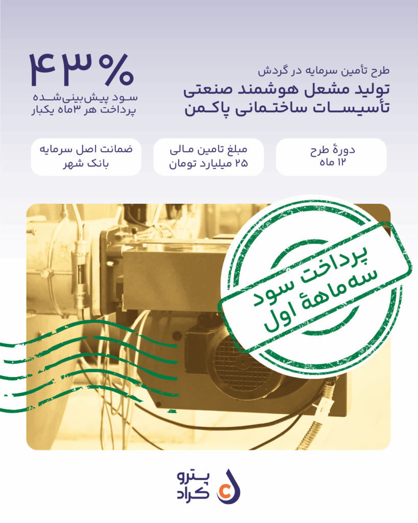 واریز سود مرحله اول تامین مالی جمعی سرمایه در گردش تولید مشعل هوشمند صنعتی پاکمن